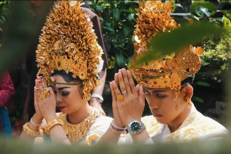 Pernikahan adat Bali sangat kental dengan unsur religius. Prosesi seperti mepandes (potong gigi) sering kali dilakukan sebelum hari pernikahan untuk mensucikan diri.